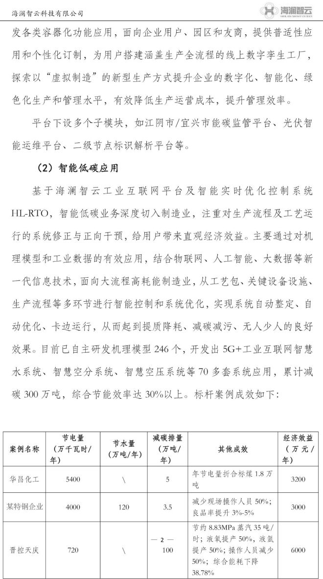 海瀾智云于2015年在江蘇省江陰市注冊(cè)成立,系海瀾集團(tuán)控股企業(yè)。海瀾智云緊緊圍繞國家“雙碳”戰(zhàn)略,以“工業(yè)互聯(lián)網(wǎng)碳中和服務(wù)商”為定位,以海瀾智云工業(yè)互聯(lián)網(wǎng)平臺(tái)為載體,融合應(yīng)用新一代信息技術(shù),自主研發(fā)可普遍適用于各類工業(yè)場景的底層控制系統(tǒng)“HL-RTO”(智能實(shí)時(shí)優(yōu)化控制系統(tǒng)),深度運(yùn)用工業(yè)數(shù)據(jù),將信息技術(shù)與制造業(yè)生產(chǎn)過程相融合,探索實(shí)施“智能化提質(zhì)降耗減碳”新路徑,為客戶提供基于工業(yè)互聯(lián)網(wǎng)平臺(tái)的智能低碳工廠系統(tǒng)解決方案,助力傳統(tǒng)企業(yè)向數(shù)字化、智能化、綠色化轉(zhuǎn)型發(fā)展,全面提升企業(yè)競爭力。目前平臺(tái)上企業(yè)用戶超6000 家,注冊(cè)用戶超 120 萬個(gè),累計(jì)減少碳排放近300萬噸。
