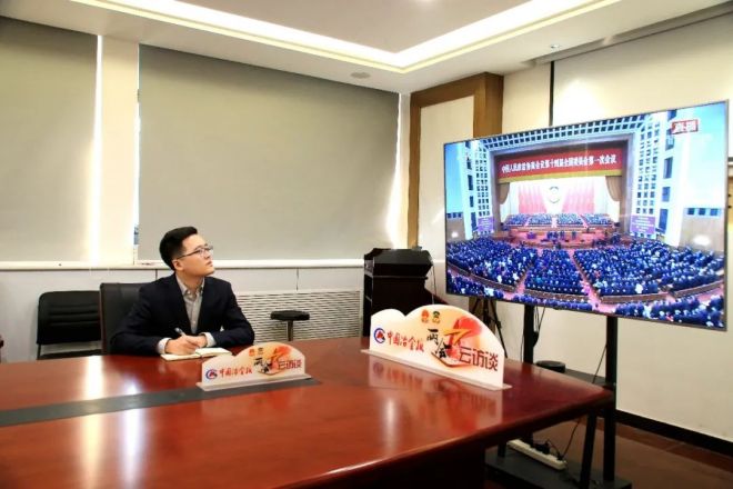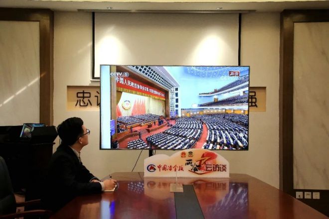 圖為本報兩會報道組記者線上收看開幕會