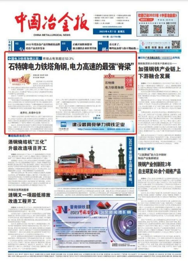 2022年,石特牌電力鐵塔角鋼市場占有率超過52.3%,穩居該品種行業冠軍之位。