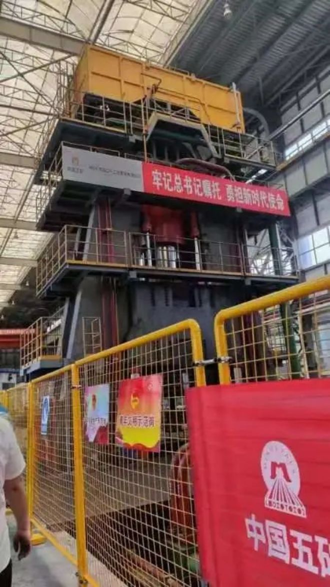 圖為國內(nèi)首條40兆牛預(yù)應(yīng)力鋼絲纏繞多向模鍛壓自動化生產(chǎn)線