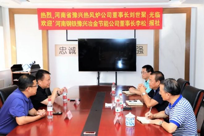 8月29日,河南省豫興熱風爐工程技術有限公司董事長劉世聚、河南鋼鐵豫興冶金節能工程技術有限公司董事長李松一行到中國冶金報社座談交流。中國冶金報社黨委書記、社長陳玉千,副社長熊余平,記者夏杰生參加了交流。