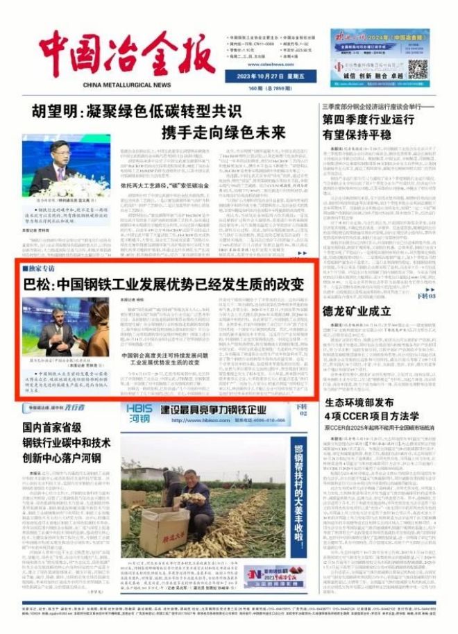 巴松認為,中國鋼鐵工業當前的發展重心需要從博采眾長、吸收他國先進經驗轉移到加強研發更為先進的低碳生產技術,進而為他人師上來。“中國鋼鐵工業的高爐使用比例較高,非常典型。長流程生產工藝中的高爐煉鐵是鋼鐵生產過程中碳排放量最多的環節。雖然短流程生產工藝的碳排放量僅相當于長流程的30%,但是短時間內全面徹底地淘汰高爐并不現實。”他說,“如何才能在不淘汰高爐的基礎上,最高效率地減少鋼鐵生產過程的碳排放?鋼鐵行業該如何因地制宜地推進低碳轉型?中國給出了一部分答案,世界還想看到更多、學習更多。”