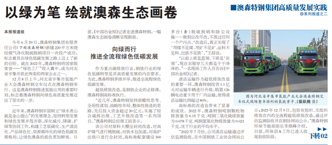 作為重點碳排放行業,鋼鐵行業的綠色低碳轉型是其高質量發展的內在要求。為此,澳森特鋼多措并舉,推進全流程綠色低碳發展。
