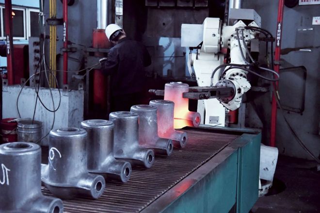 圖為中國二十二冶集團多向模鍛件生產線一角。