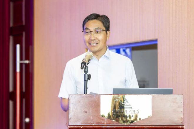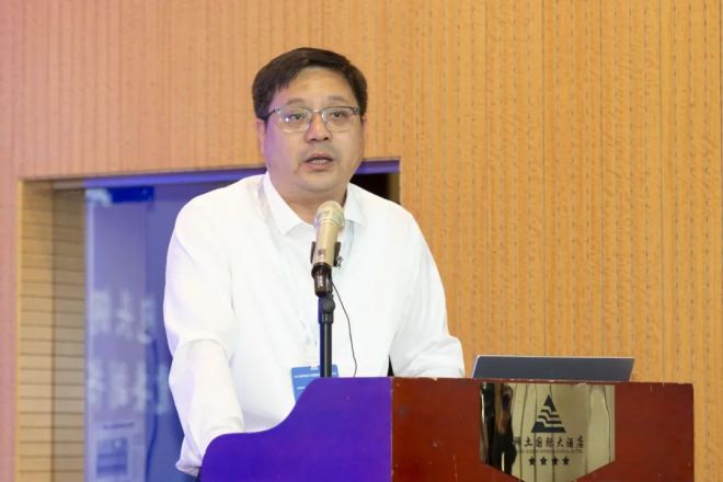 圖為內(nèi)蒙古科技大學(xué)教務(wù)處處長(zhǎng)王軍做《守正創(chuàng)新,強(qiáng)化特色,構(gòu)建高水平教材建設(shè)與管理新體系》報(bào)告
