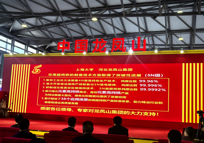 11月5日上午,河北龍鳳山集團在上海舉行高超純鐵新產品首發儀式,該高超純鐵新產品鐵的純度提升至99.9992%(5N級)。此次活動由中國特鋼企業協會指導,河北龍鳳山集團主辦,上海大學、冶金工業經濟發展研究中心、中國冶金報社協辦。