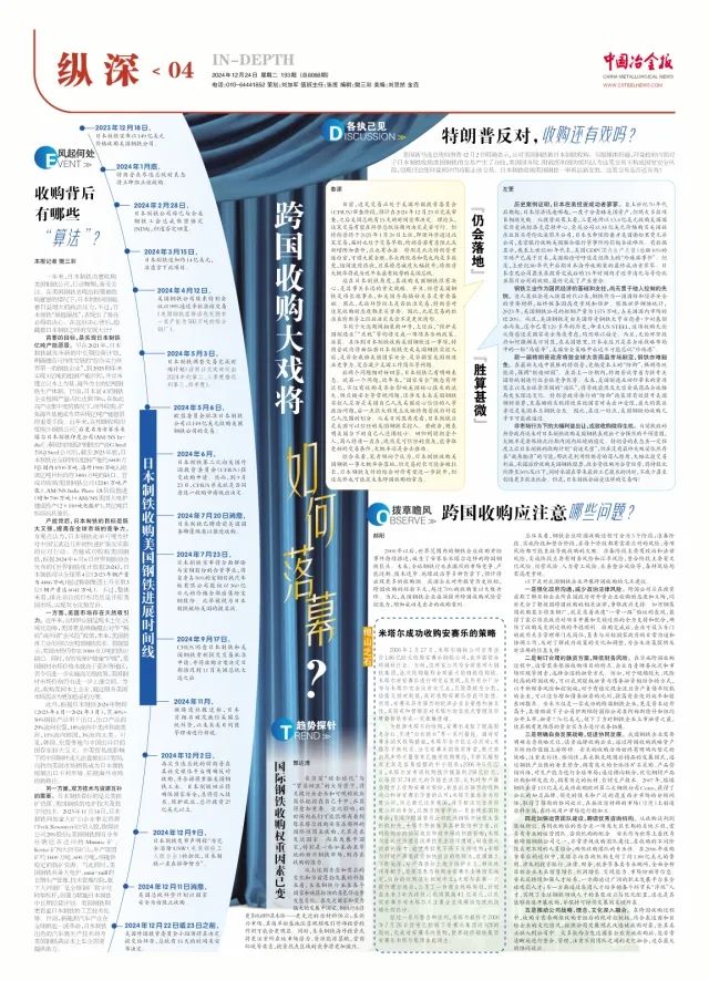 綜合來看,筆者傾向于認為,日本制鐵收購美國鋼鐵一事大概率會落地,但交易時長可能會被拉長,日本鋼鐵支付的綜合對價有望進一步提升,但這或許也可能是未來跨國收購的常態。