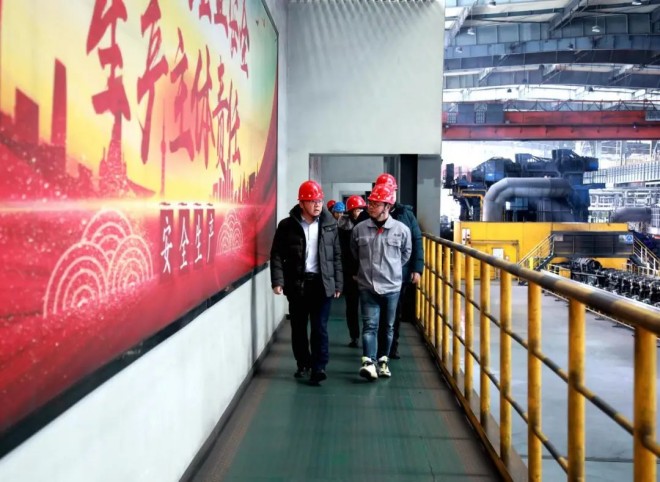 圖為中國冶金報(bào)社一行參觀無縫鋼管產(chǎn)線