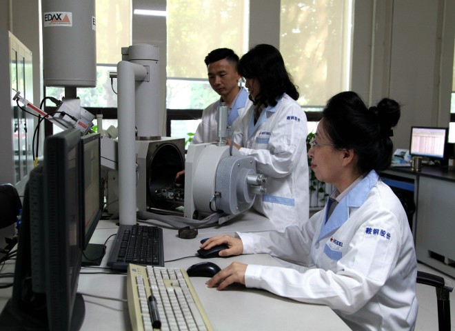 圖為研發(fā)人員討論分析新開發(fā)的產(chǎn)品顯微組織。