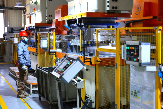 圖為大河金屬模塊公司工作人員正在作業