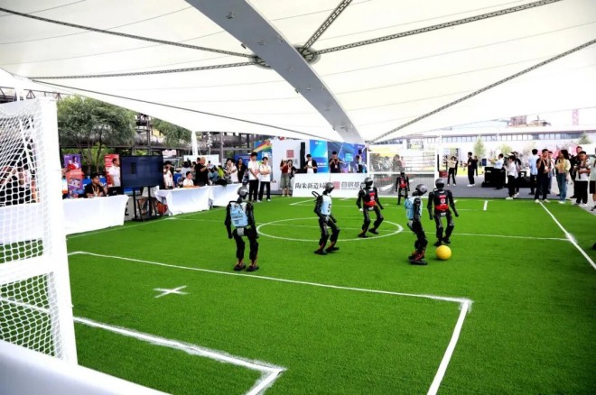 9月10日,人形機器人進行3V3足球比賽