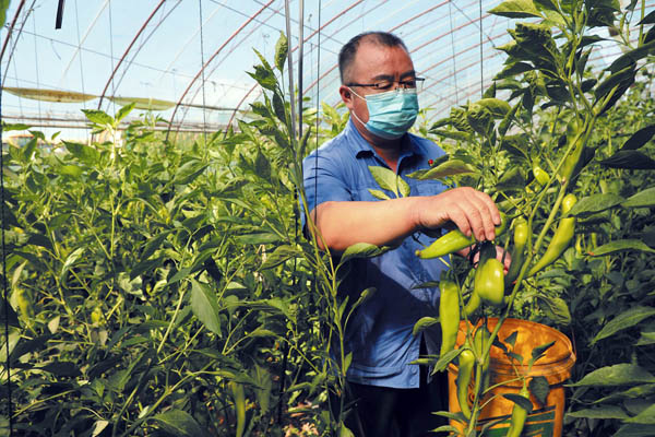 圖為河鋼集團張宣科技集體企業(yè)公司職工正在采摘尖椒。 (江瑄 攝)