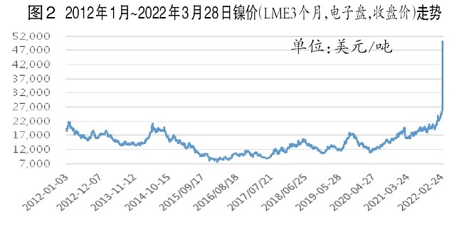 從鎳價歷史曲線的走勢上看,目前的鎳價已經創歷史新高。在需求持續被看好的情況下,突發的局部地緣沖突影響了有效的市場資源供給,“妖鎳”又來了?。ㄒ妶D2)