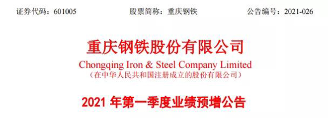 4月8日晚間,重慶鋼鐵(601005)發(fā)布《2021年第一季度業(yè)績預增公告》(以下簡稱“公告”)。