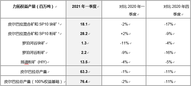 本報訊(記者朱曉波)4月20日,力拓發(fā)布了2021年第一季度生產(chǎn)業(yè)績報告。根據(jù)報告,一季度力拓鐵礦石產(chǎn)量(100%權(quán)益基礎(chǔ))為7640萬噸,同比下降2%,環(huán)比下降11%;鐵礦石發(fā)運量達(dá)到7780萬噸,同比增長7%,環(huán)比下降12%。