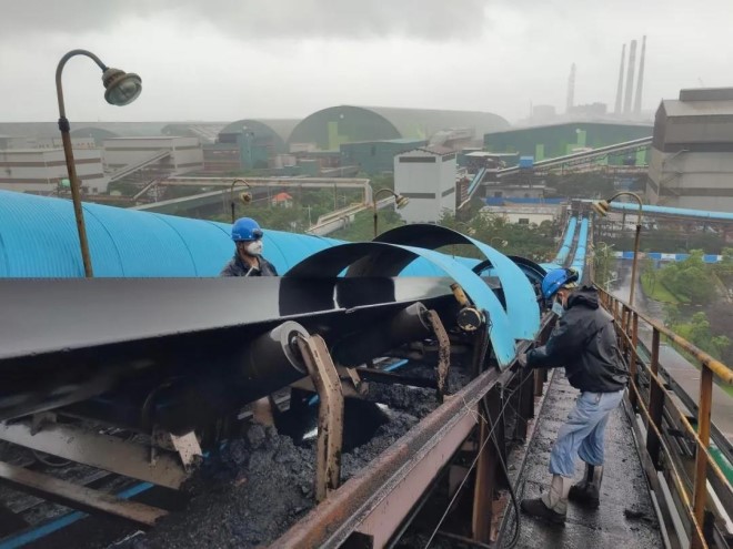 全面排查,加強重點部位防范。為了避免極端天氣帶來的人員財產損失,提高應急處置能力,中冶寶鋼組織不同層級隱患排查21次,對“管用養(yǎng)修”行車防風防雷設施、機動車停放區(qū)域、危險化學品倉庫、成品倉庫、配電室、廠房、辦公樓等可能遭受影響的重點管控區(qū)域開展地毯式排查和及時整改。排查、清理和疏通雨排水、下水管道160余處,排查、固定室外廣告牌、空調外掛機等易墜落物品390多件,檢查、清理窗臺、陽臺等區(qū)域460余處。開展機動車、“三車”反光標識檢查,重點對極端天氣下員工上下班期間交通安全進行安全宣貫和監(jiān)督提醒。馬跡山港卸船機、裝船機、堆取料機大機均回到錨定位置,安裝鐵鞋、錨定、防風拉桿,包扎露天電源操作箱,安裝皮帶機防風鏈條和工作船碼頭防汛墻,6條拖輪于7月22日離港回滬避臺。梅山基地對露天料場覆蓋防雨布,加固料堤,防止風雨造成料場塌方。