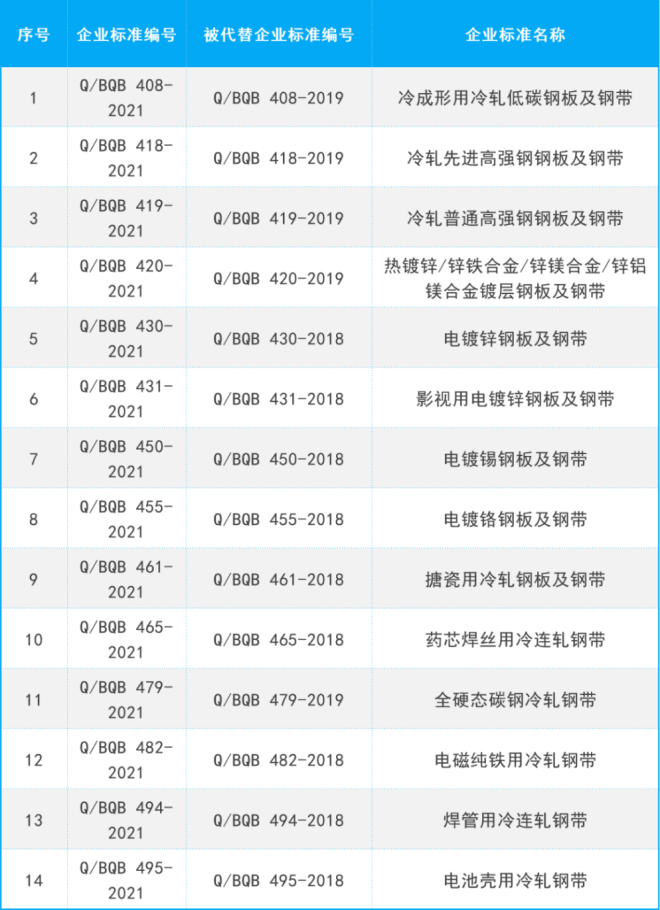 此次修訂重點針對2018、2019年發布的企業標準,根據三年來的品種拓展與生產工藝新要求,并結合用戶需求,共修訂發布了14項冷軋產品企標。