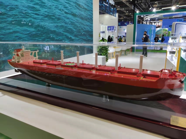 本屆進博會淡水河谷展臺的另一亮點是一艘按照1比250的比例制作的船模,其原型是世界上首艘配備旋翼帆的礦砂船。這艘船名為“海洋舟山號”,是一艘載重量為32.5萬噸的Guaibamax型船,該船安裝了5個旋翼帆,將使能效至多提高8%,每年由此可減排3400噸二氧化碳當量。淡水河谷預計,旋翼帆技術可用于船隊中至少40%的船舶。屆時,淡水河谷鐵礦石海運過程中產生的碳排放每年可減少近1.5%。