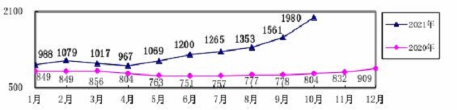 2021年1-10月,煉焦煤累計采購成本同比增長41.25%;冶金焦同比增長51.82%;國產鐵精礦同比增長50.41%,進口粉礦同比增長53.32%;生鐵同比增長38.18%;廢鋼同比增長37.23%。