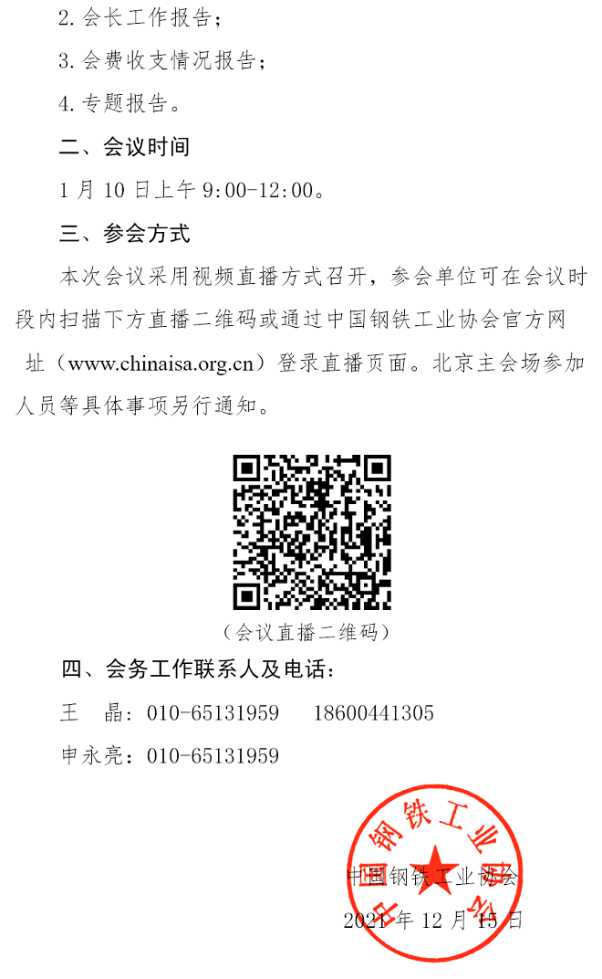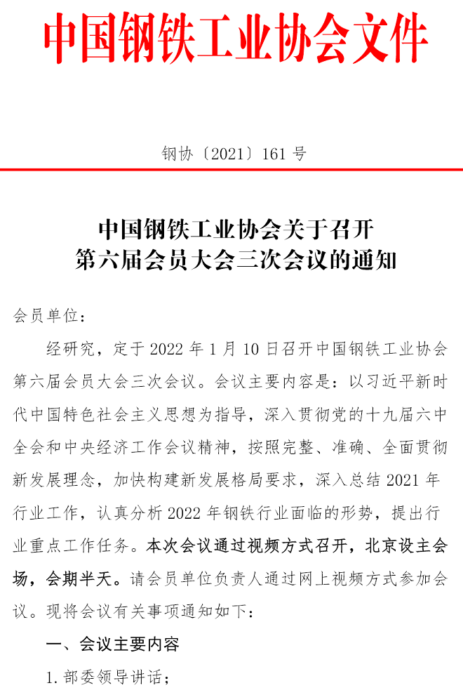 中國鋼鐵工業協會關于召開第六屆會員大會三次會議的通知