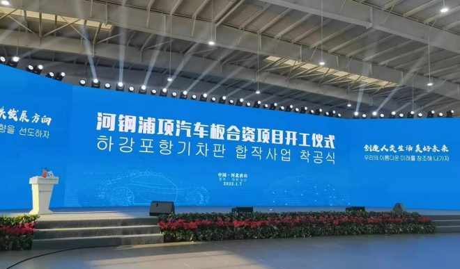 1月7日上午,河鋼浦項汽車板合資項目開工儀式以視頻連線方式在河北唐山和韓國首爾兩地同步舉行。項目的開工,標志河鋼集團與POSCO強強聯手打造世界汽車面板引領者進入高標準建設的新階段,雙方將攜手建設中韓兩國企業務實合作典范項目,引領世界鋼鐵發展方向。