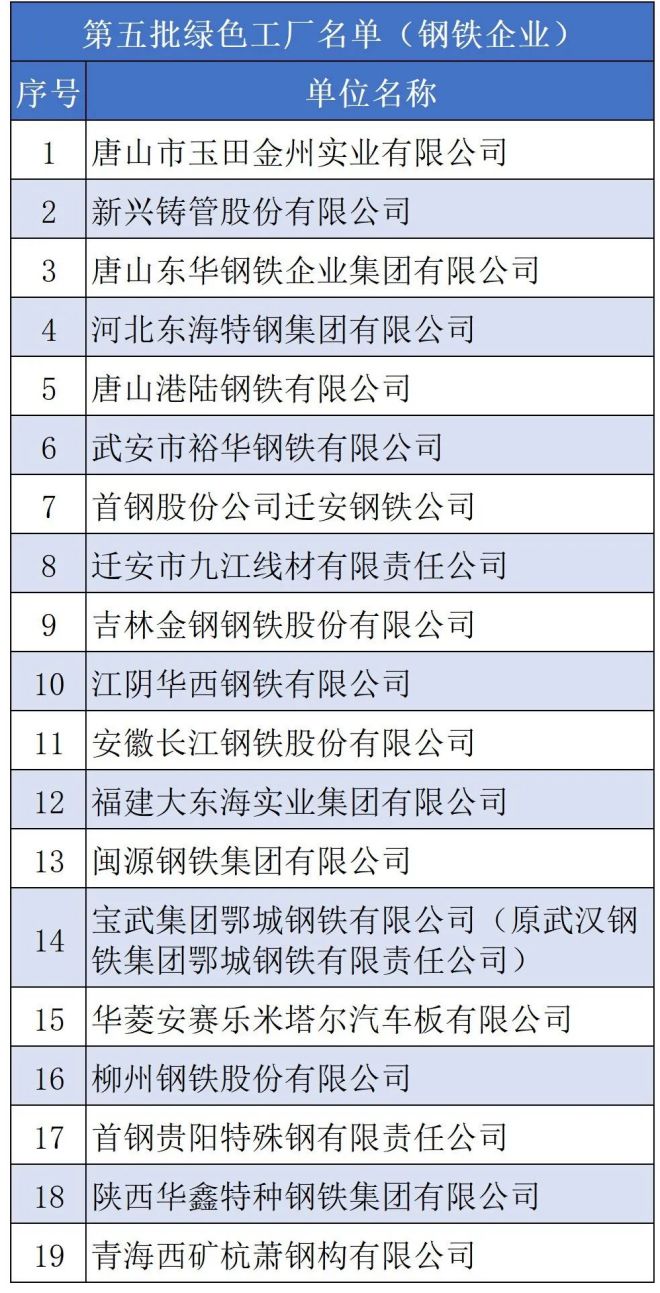 之前分5批公布的69家鋼鐵企業“綠色工廠”名單: