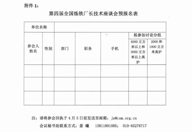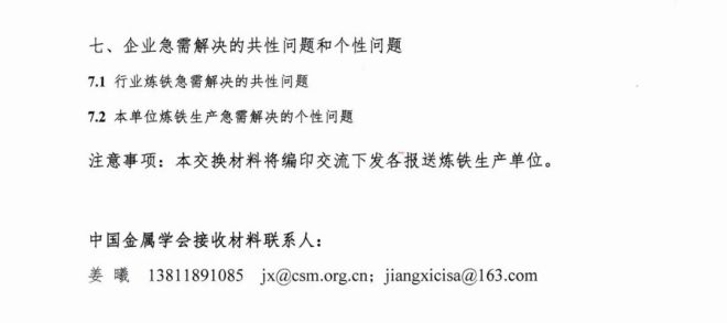 2. 2021年各企業煉鐵生產技術總結交換材料Word版本。各單位需提供本企業交換材料,會議期間交流下發各生產單位。接收材料聯系人:姜曦 13811891085;jx@csm.org.cn; jiangxicisa@163.com