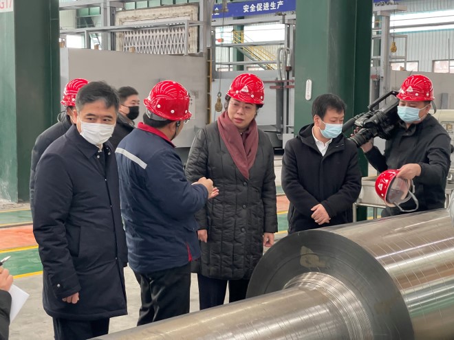 孫建勛總經(jīng)理為朝陽(yáng)市委書記張淑萍介紹聯(lián)強(qiáng)軋輥?lái)?xiàng)目