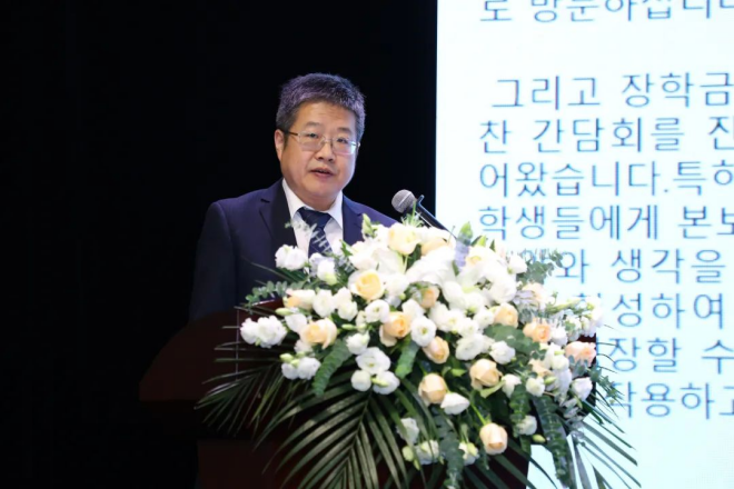 北大教育基金會副秘書長王勇在致辭中表示:“自2005年P(guān)OSCO集團在北京大學設(shè)立獎學金以來累計獎勵了超過兩百人次的北大優(yōu)秀學子,對青年學子全面成長、北京大學人才培養(yǎng)事業(yè)發(fā)展、中韓青年交流和友誼傳遞做出了貢獻。”