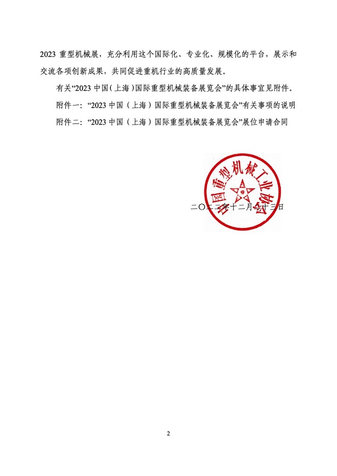 關于舉辦“2023中國(上海)國際重型機械裝備展覽會”的通知