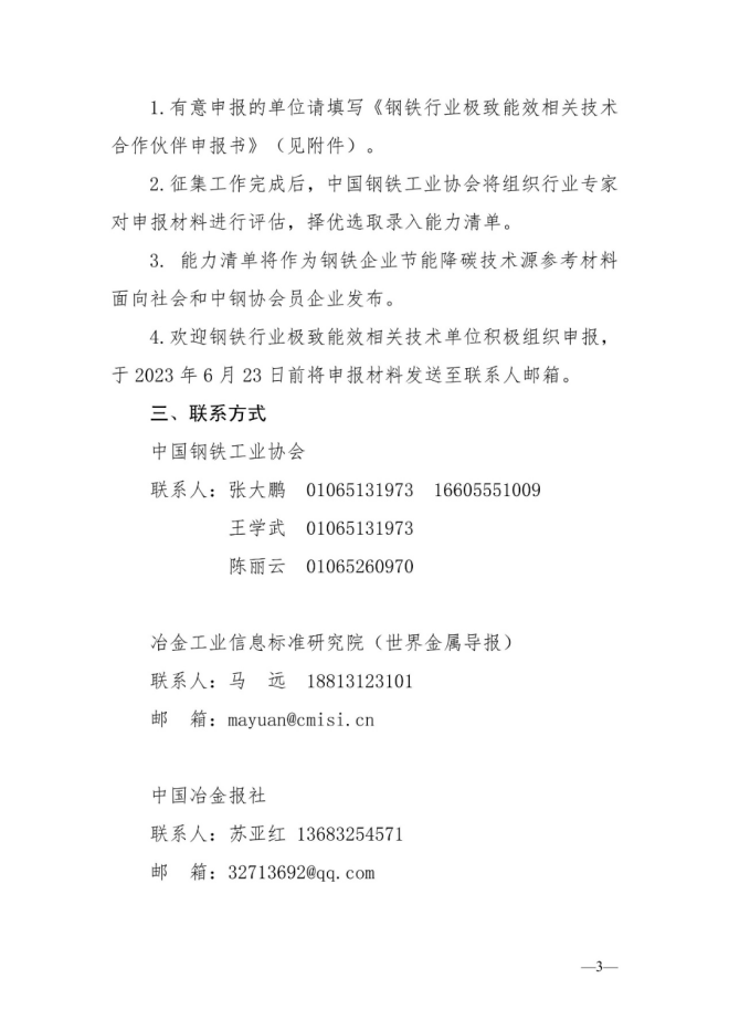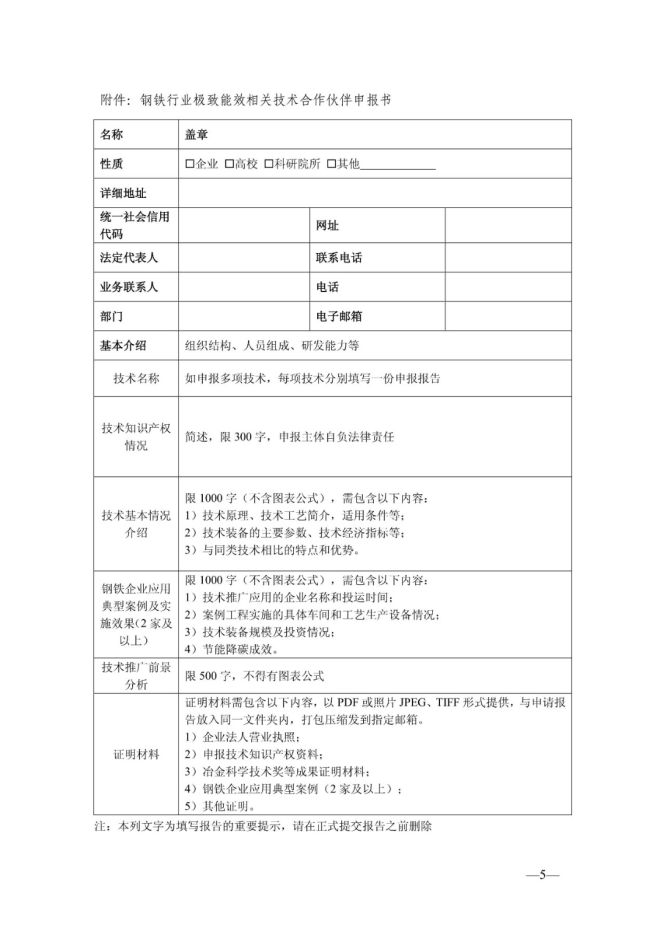 《通知》下載鏈接:關于征集技術合作伙伴形成鋼鐵極致能效能力清單的通知.pdf