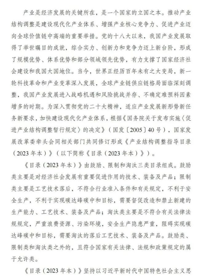 國家發展改革委關于《產業結構調整指導目錄(2023年本,征求意見稿)》公開征求意見的公告