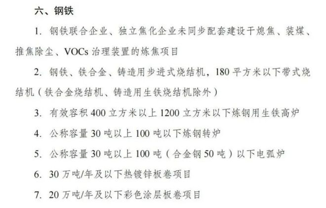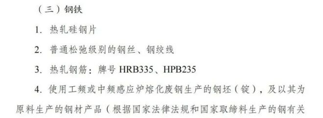 其中鋼鐵部分摘錄如下: