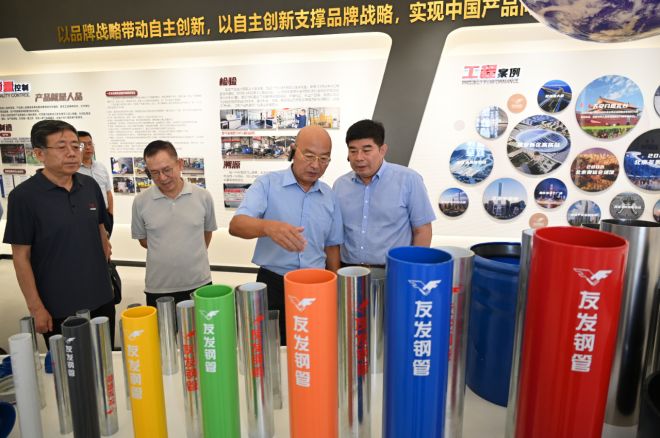 9月12日,中國鋼鐵工業協會黨委書記、執行會長何文波一行蒞臨友發集團調研指導,中鋼協黨委常委、副會長駱鐵軍,中鋼協副秘書長石洪衛、馮超和規劃發展部王濱、綜合部(財務資產部)焦響陪同調研,友發集團董事長李茂津、總經理陳廣嶺和集團領導陳克春、徐廣友、韓德恒、韓衛東、郭銳、孫磊等熱情接待。