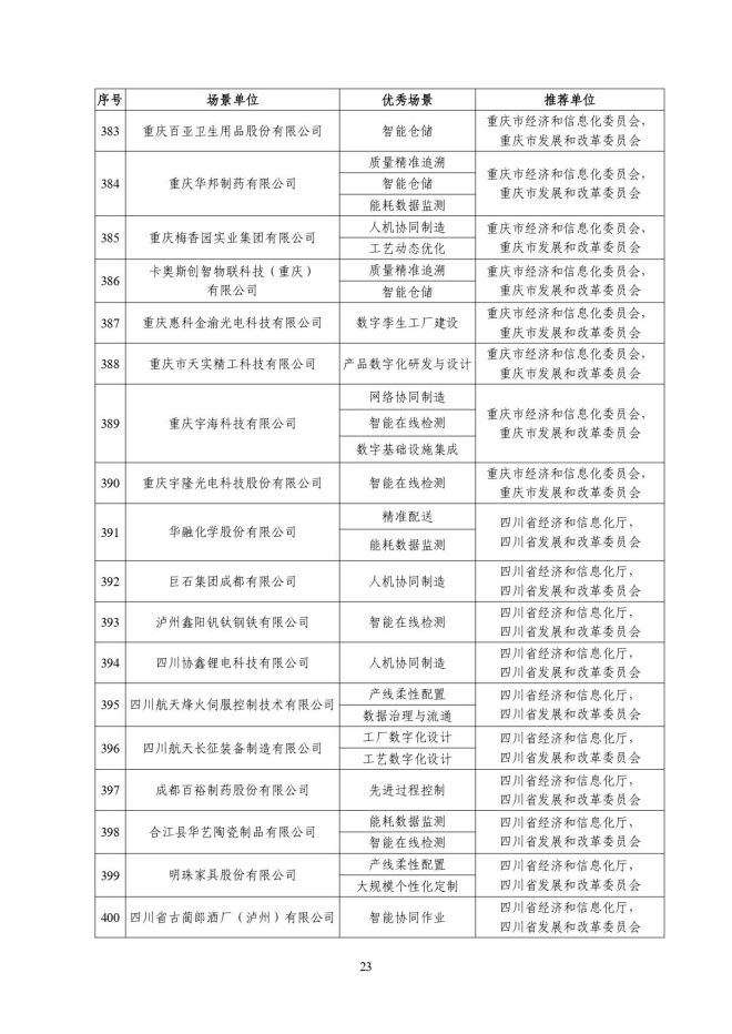 2023年度智能制造示范工廠揭榜單位和優秀場景公示