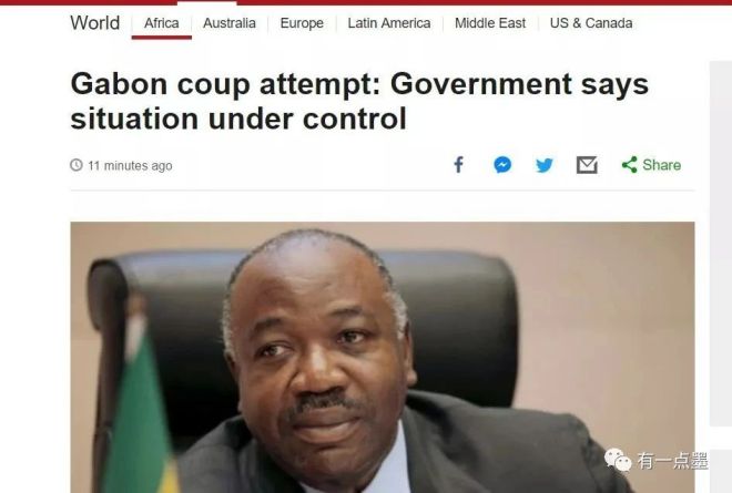 不過(guò)就在8月份,加蓬舉行七年來(lái)的首次大選。8月30日凌晨,加蓬選舉中心剛剛公布已經(jīng)擔(dān)任14年總統(tǒng)的阿里·邦戈將繼續(xù)連任之后,曾經(jīng)長(zhǎng)期忠于邦戈的加蓬軍方便迅速發(fā)動(dòng)政變、軟禁邦戈、解散國(guó)家機(jī)關(guān)、接管?chē)?guó)家政權(quán)。