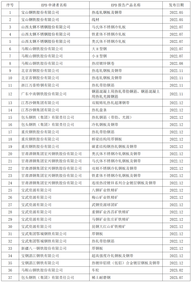 2023年12月29日,鋼鐵行業EPD平臺(以下簡稱平臺)第100份EPD正式發布。