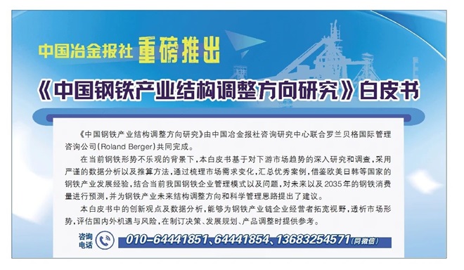 《中國鋼鐵產(chǎn)業(yè)結(jié)構(gòu)調(diào)整方向研究》由中國冶金報社咨詢研究中心聯(lián)合羅蘭貝格國際管理咨詢公司(Roland Berger)共同完成。