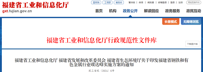 福建省工業和信息化廳 福建省發展和改革委員會 福建省生態環境廳關于印發福建省鋼鐵和有色金屬行業碳達峰實施方案的通知