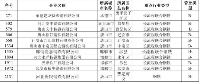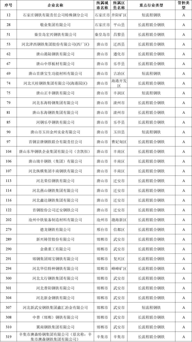 重磅!河北省A級、B級鋼鐵企業名單出爐