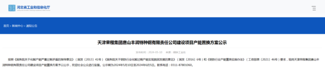 5月10日,河北省工業(yè)和信息化廳發(fā)布《天津榮程集團唐山豐潤特種鋼有限責(zé)任公司建設(shè)項目產(chǎn)能置換方案公示》,天津榮程集團唐山豐潤特種鋼有限責(zé)任公司將新建70噸電弧爐一座,配套建設(shè)70tLF爐2座,70tVOD爐1座,預(yù)計2024年8月投產(chǎn)。