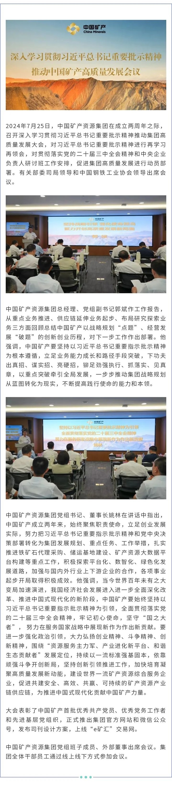 中國礦產(chǎn):努力在服務(wù)國家戰(zhàn)略中展現(xiàn)新作為作出新貢獻(xiàn)