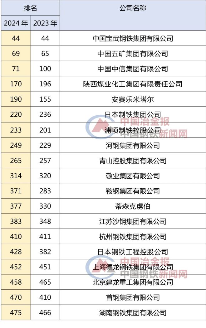 19家涉鋼企業(yè)上榜2024年財富世界500強
