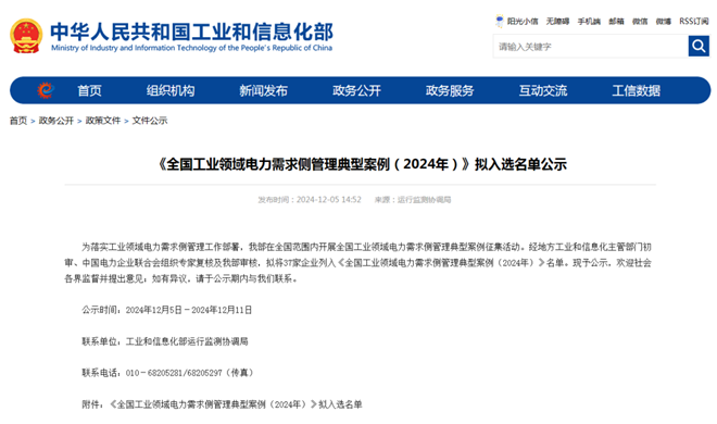 12月5日,工信部發布了《全國工業領域電力需求側管理典型案例(2024年)》擬入選名單,共有37家企業入選。