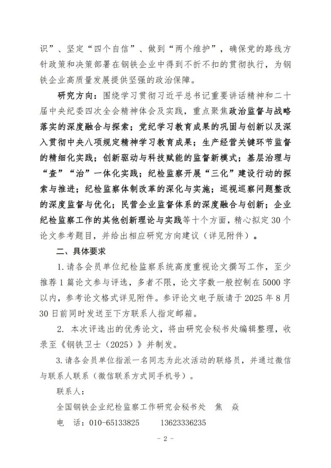 關于組織征集第二十一次鋼鐵企業紀檢監察年度工作會議論文的通知