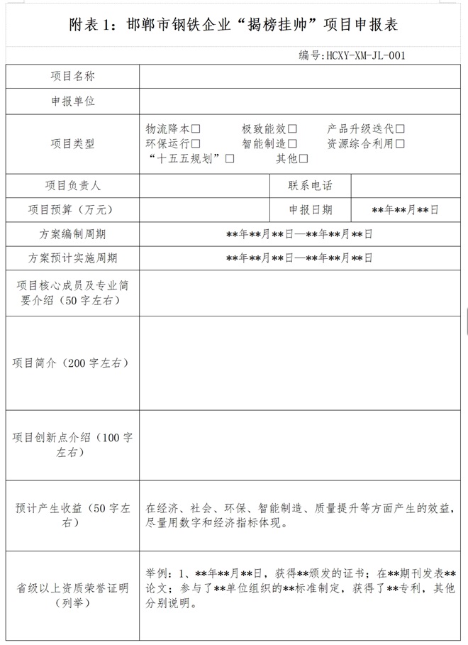 1、背景:為助力邯鄲市鋼鐵產業高質量發展,加快流程結構調整優化,聚焦行業技術難點,加快新技術新工藝在邯鄲如何低成本化落地應用。