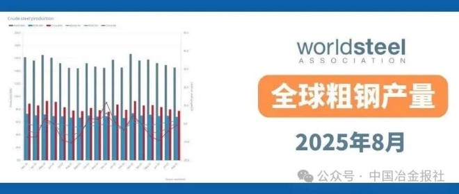 2025年8月全球70個納入世界鋼鐵協會統計國家/地區的粗鋼產量為1.453億噸,同比提高0.3%