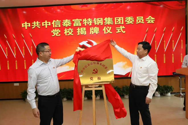2020年9月28日,中共中信泰富特鋼集團股份有限公司委員會黨校揭牌成立。中信泰富特鋼黨委書記、董事長錢剛任校長,黨委副書記郟靜洪任副校長。“黨校的成立,是中信泰富特鋼黨委貫徹落實習近平新時代中國特色社會主義思想和黨的十九大精神,落實全面從嚴治黨要求,加強集團黨建的一項重要舉措,也是堅定集團黨員干部理想信念,提升黨員干部綜合素質,助推集團高質量發展的必然選擇。”錢剛指出。