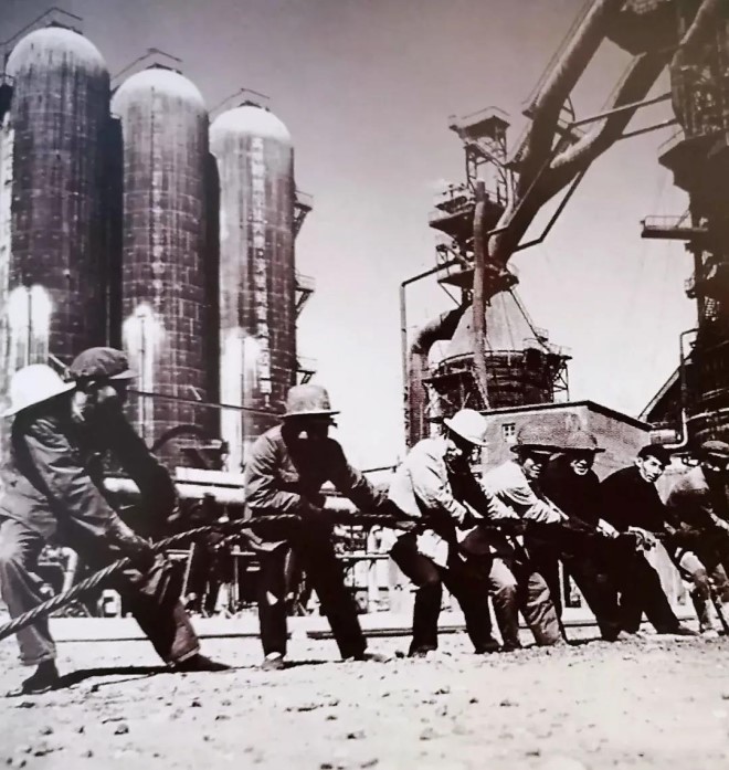 這一階段,在中國(guó)共產(chǎn)黨領(lǐng)導(dǎo)下,“集中力量辦大事”的制度優(yōu)越性得到充分體現(xiàn)和發(fā)揮。1950年6月份,中國(guó)共產(chǎn)黨七屆三中全會(huì)指出,黨在三年經(jīng)濟(jì)恢復(fù)時(shí)期(1949年底~1952年底)的中心任務(wù)是為爭(zhēng)取國(guó)家財(cái)政經(jīng)濟(jì)狀況的基本好轉(zhuǎn)而斗爭(zhēng),重點(diǎn)是恢復(fù)和發(fā)展生產(chǎn)。會(huì)議決議為三年經(jīng)濟(jì)恢復(fù)時(shí)期黨的工作規(guī)定了明確的策略路線(xiàn)和行動(dòng)綱領(lǐng)。為此,恢復(fù)、改造、擴(kuò)建舊中國(guó)遺留下來(lái)的鋼鐵生產(chǎn)工業(yè)裝備就成了當(dāng)務(wù)之急,會(huì)議也為鞍鋼、重鋼、本鋼等鋼企的恢復(fù)指引了方向、提供了動(dòng)力、鼓舞了斗志。