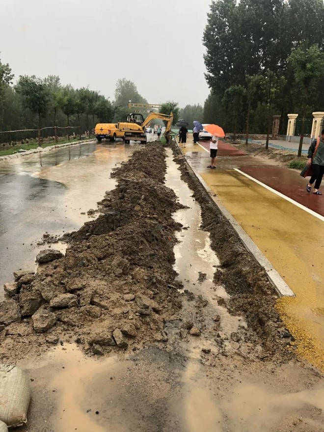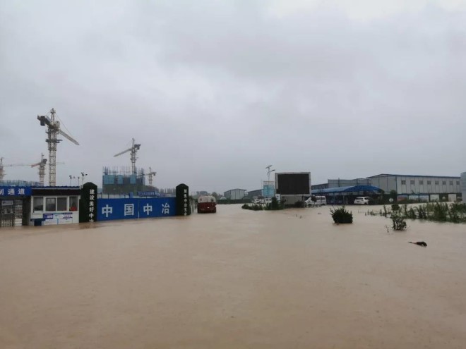 中國十七冶鄭州片區雙橋東項目、河南大學項目、大河社區安置房項目、鄭州財經學院項目出現嚴重積水,最深處達3米,部分基坑坍塌近20米,圍擋被沖毀約120米。兩級公司迅速成立抗洪指揮部,統一指導各項目部分類實施應急預案,組織疏散300余名作業人員,禁止非相關人員進入現場,關閉施工機械及垂直運輸設備電源,轉移暴雨可能危及的設備、材料至安全地帶,加固基坑臨邊防護,匯水處用編織袋裝土進行封堵。投入500多人次展開排水作業,調用大型挖機、鏟車對坍塌區域進行搶險,對圍擋土堆進行加固,成功封堵沖毀部位。同時采購包括編織袋、照明設備等在內近萬元物資用于抗洪搶險保障,充分做好防汛搶險準備工作。